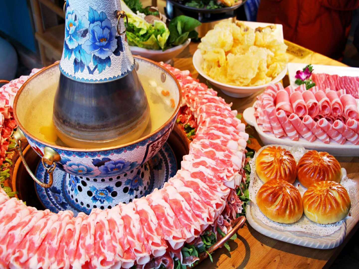 这道家传户晓的蒙古菜,是有个传说的。当年元世祖忽必烈统帅大军南下远征,有一天,人困马乏饥肠辘辘,他猛想起家乡的菜肴——清炖羊肉,于是吩咐部下杀羊烧火。正当伙夫宰羊割肉时,探马飞奔进帐报告敌军逼近。饥饿难忍的忽必烈一心等着吃羊肉,他一面下令部队开拔一面喊:“羊肉!羊肉!”厨师于是急中生智,飞刀切下十多片薄肉,放在沸水里搅拌几下,待肉色一变,马上捞入碗中,撒下细盐。忽必烈连吃几碗,便翻身上马率军迎敌,结果旗开得胜。在筹办庆功酒宴时,忽必烈特别点了那道羊肉片。厨师选了绵羊嫩肉,切成薄片,再配上各种佐料,将帅们吃后均赞不绝口。厨师忙迎上前说:“此菜尚无名称,请帅爷赐名。”忽必烈笑答:“我看就叫‘涮羊肉’吧!”从此“涮羊肉”就成了宫廷佳肴。