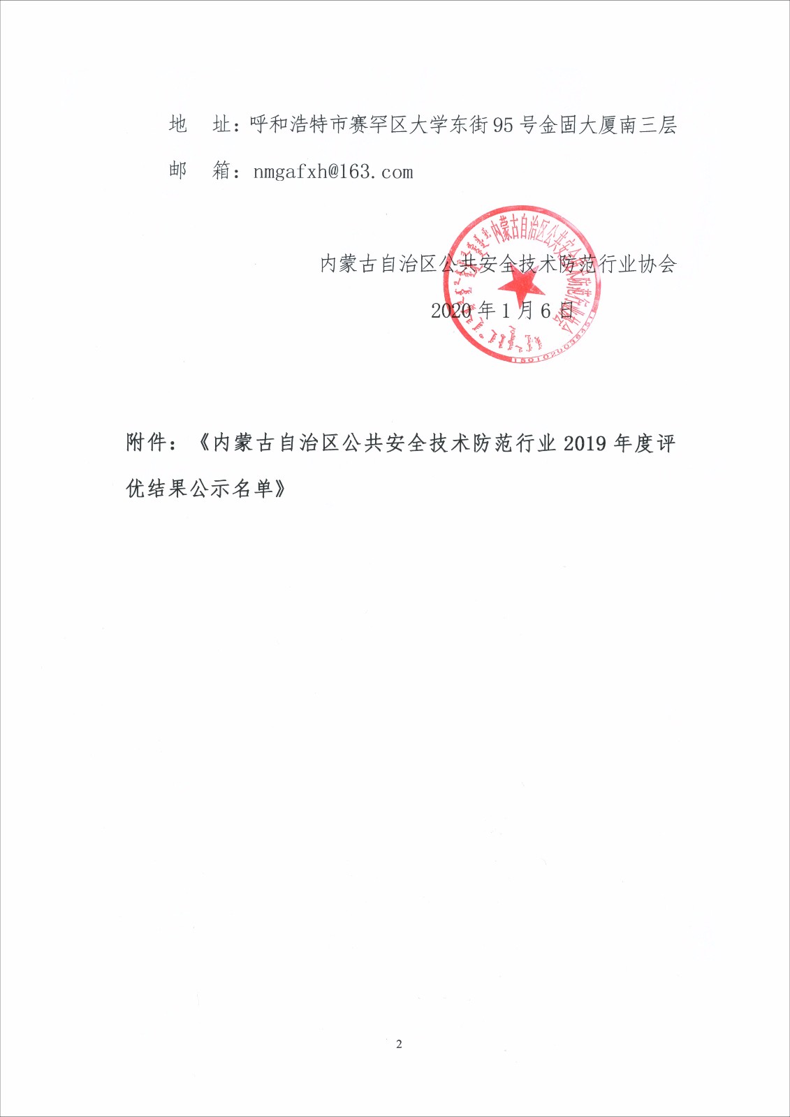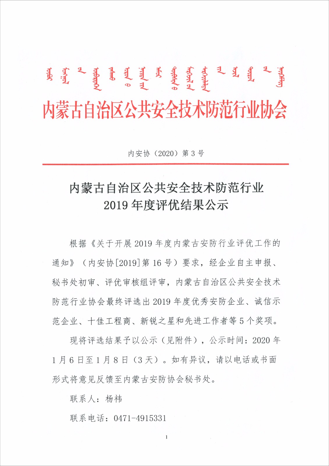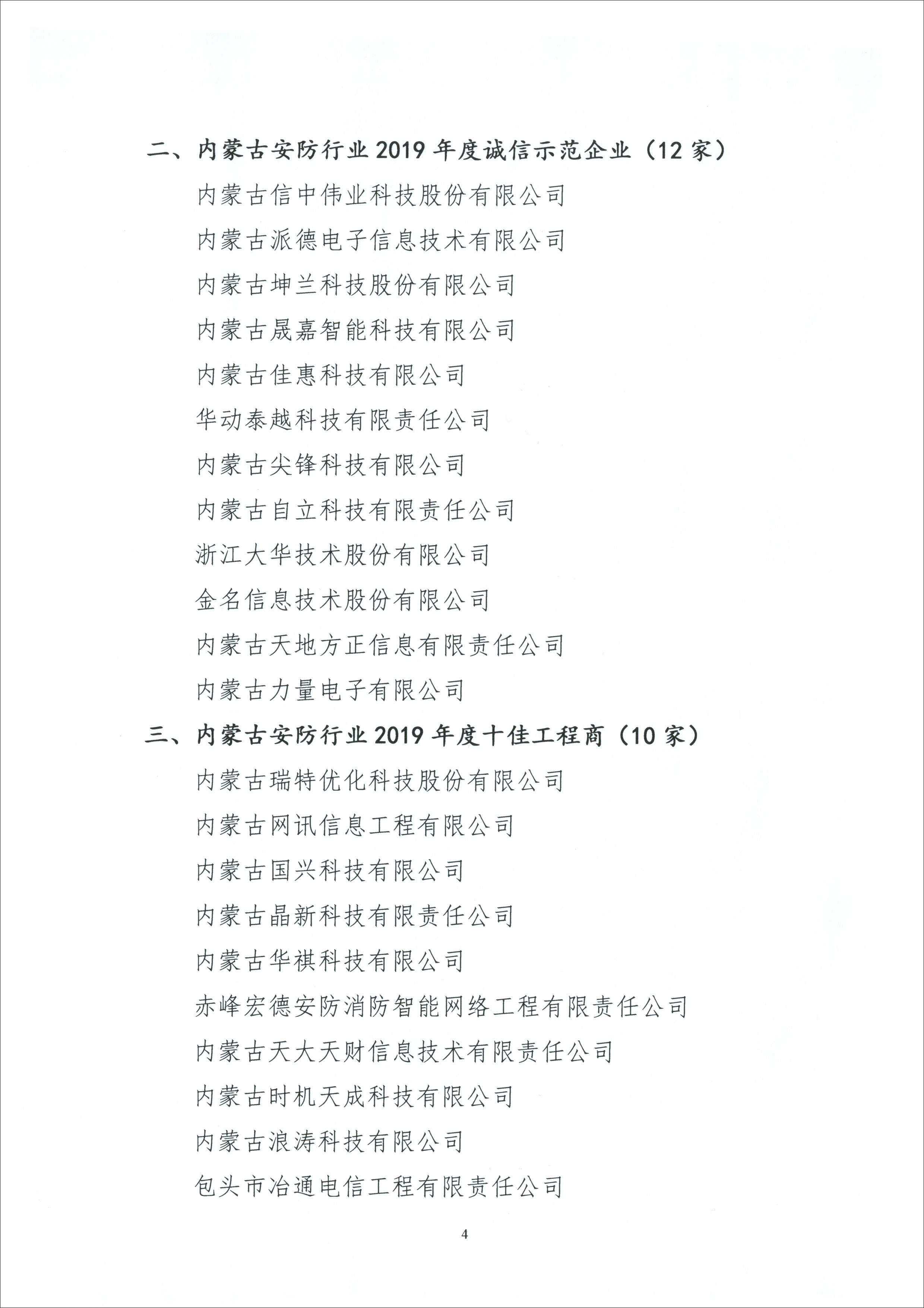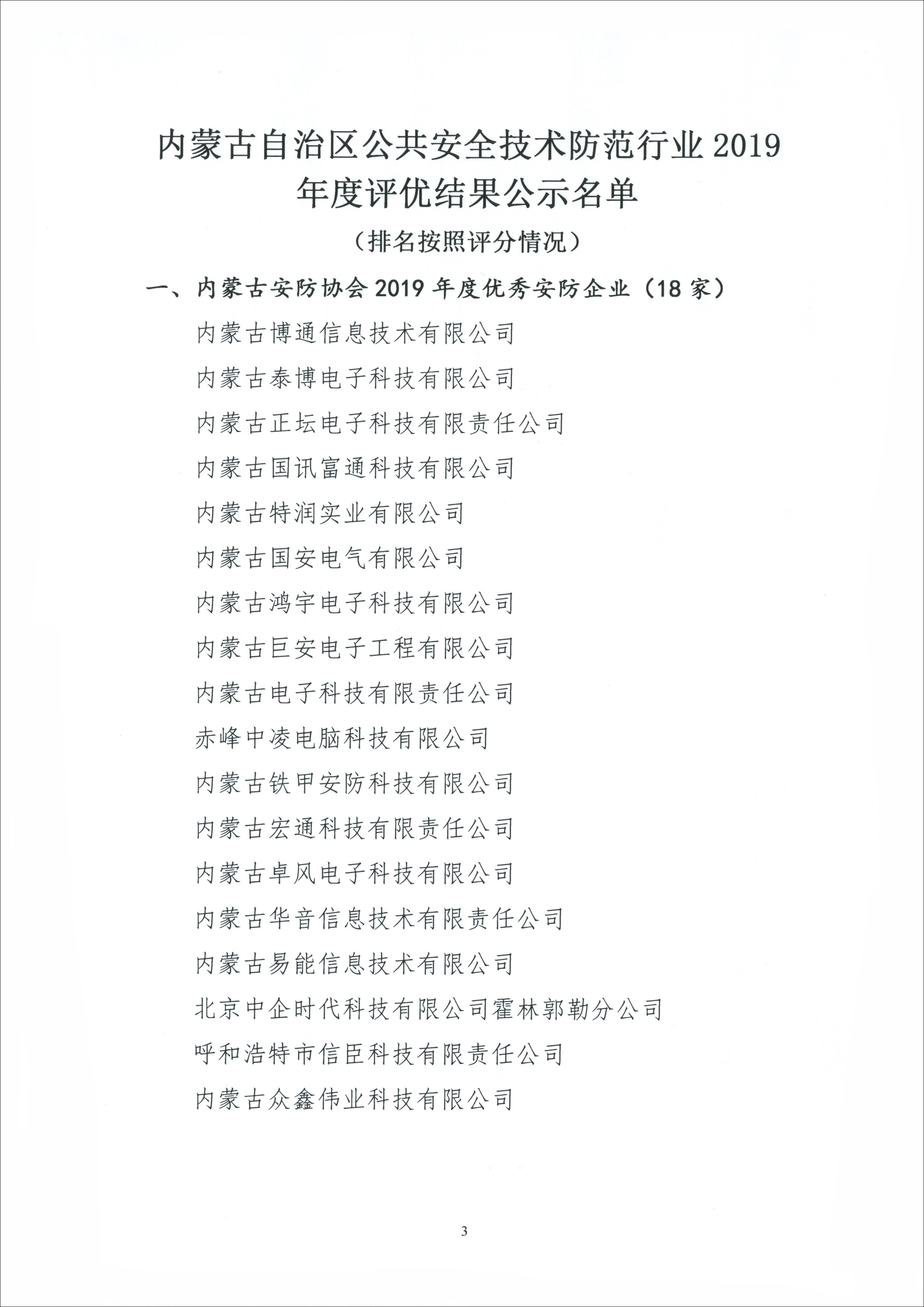 内蒙古自治区公共安全技术防范行业2019年度评优结果公示